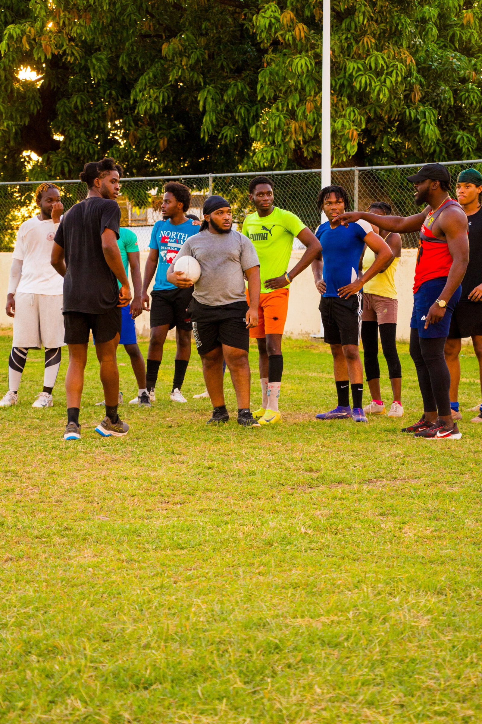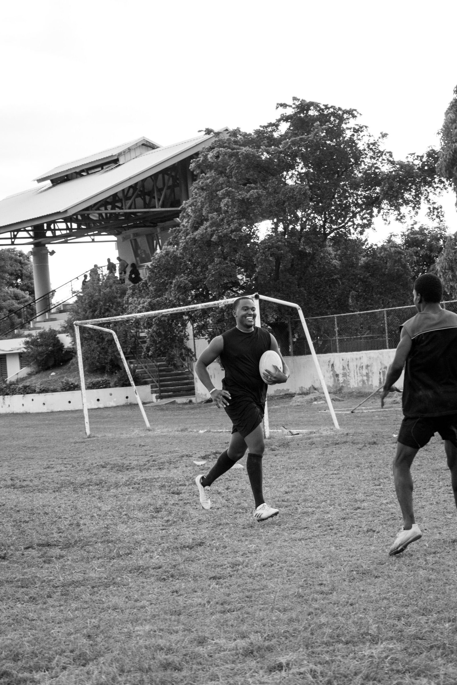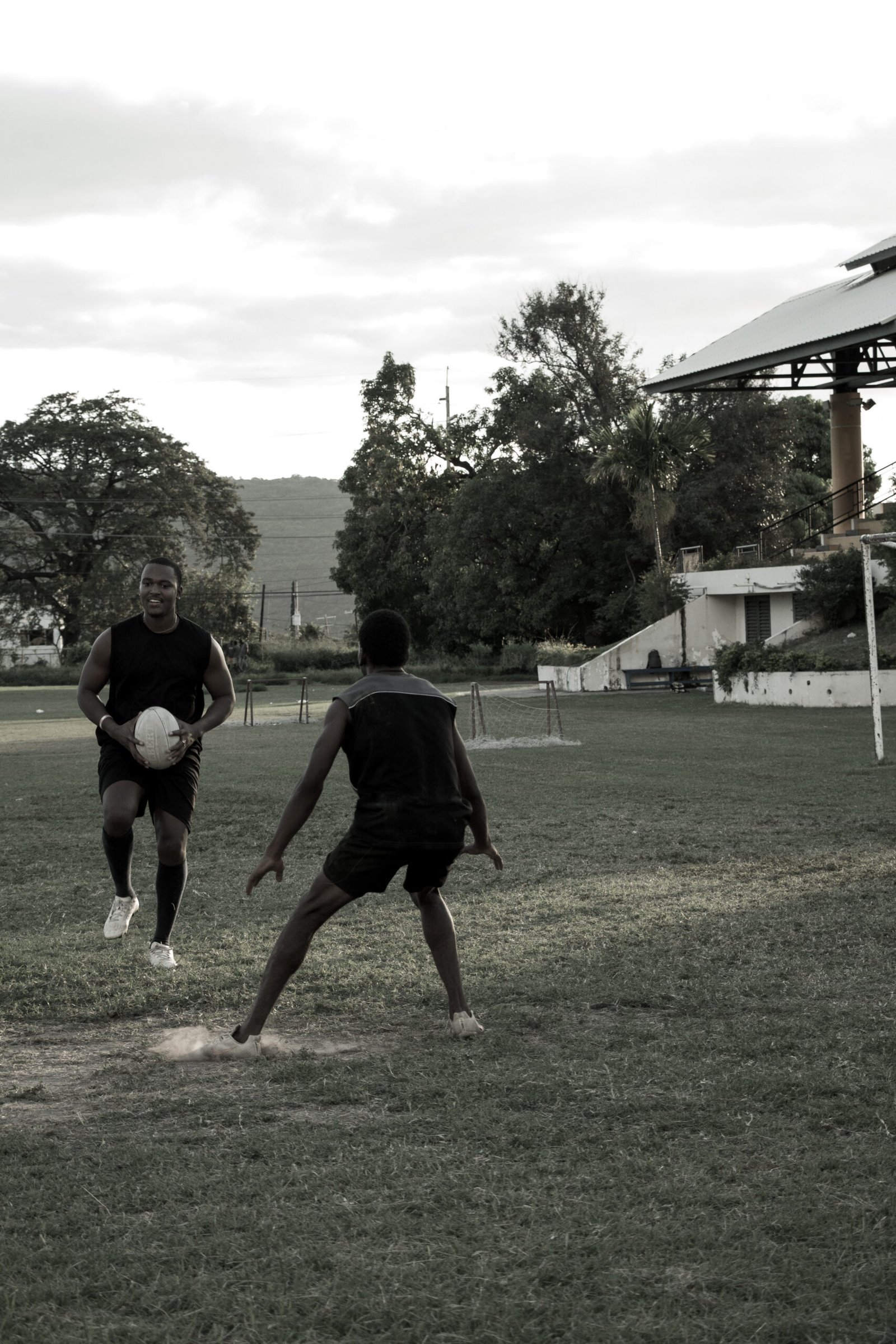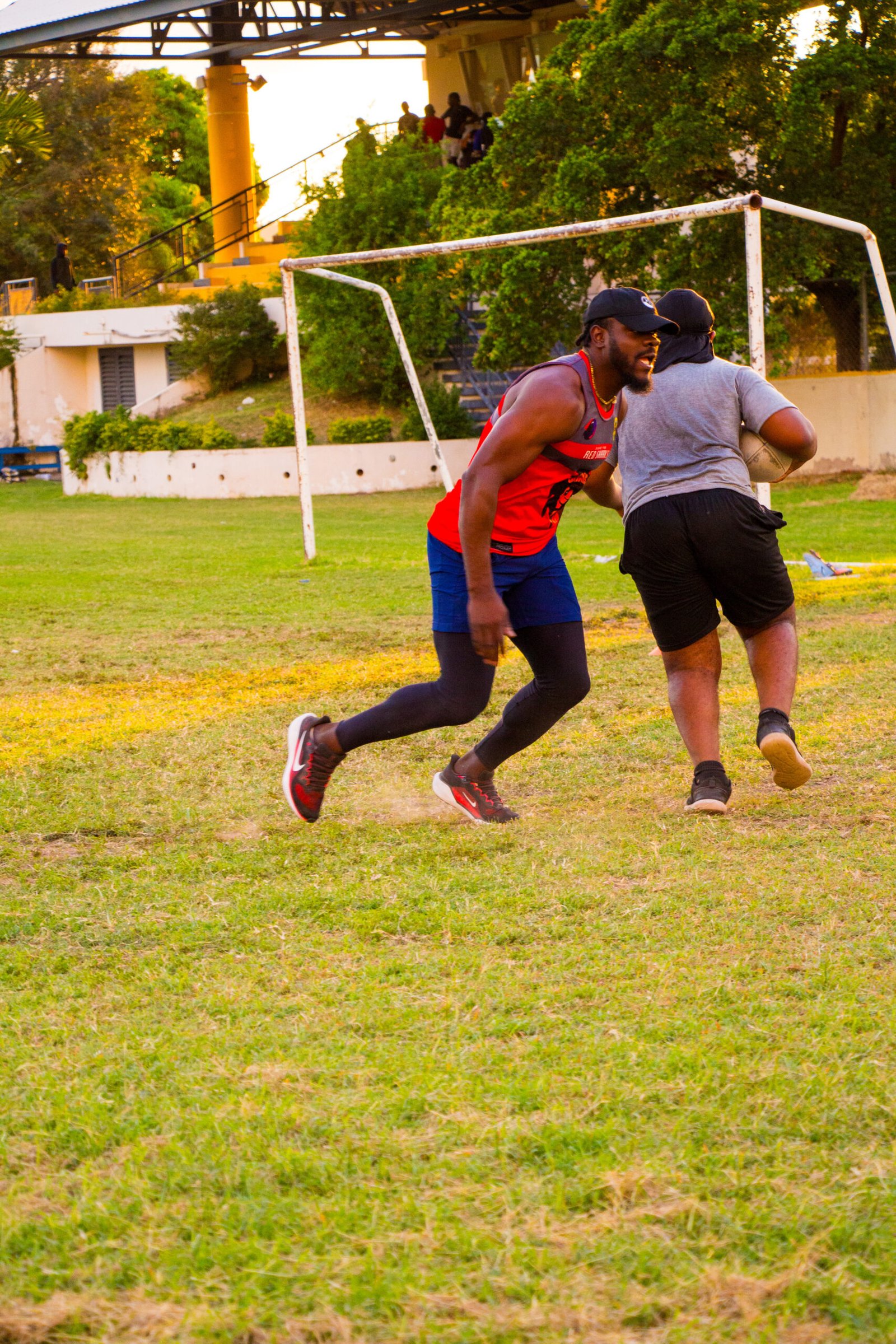 Teammates practicing at rugby training
