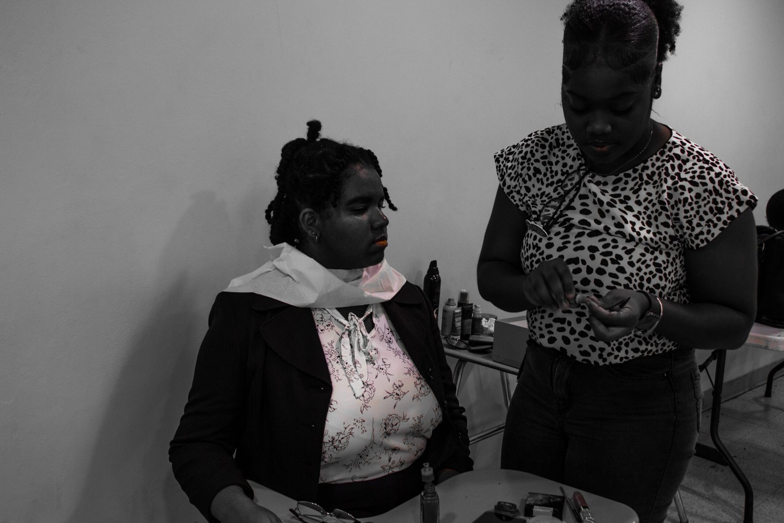 Student getting her makeup done for her professional headshot